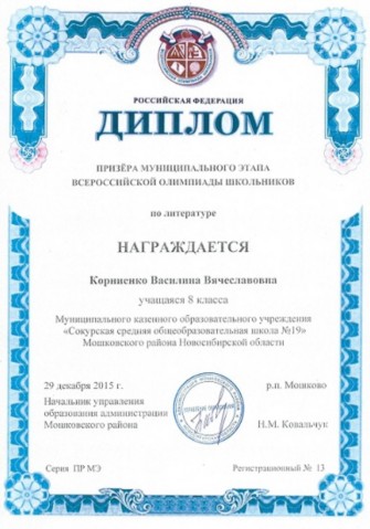 Муниципальное казенное общеобразовательное учреждение "Сокурская средняя общеобразовательная школа № 19" Мошковского района Новосибирской области